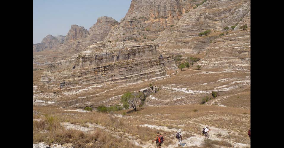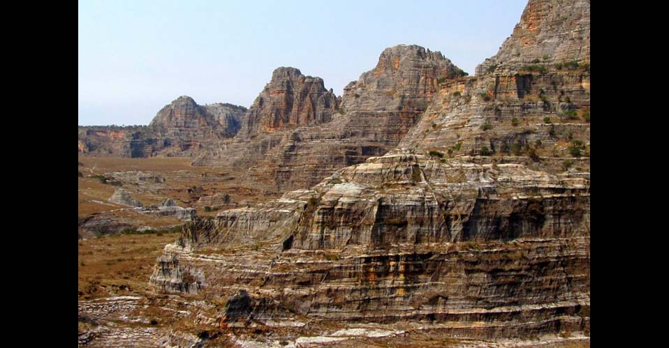 Notre première journée se tient vers le Canyon des Singes. Nous nous y rendons en véhicule. Au pied de la falaise, dans la forêt se cachent maky et sifaka, ces lémuriens espiègles du sud de Madagascar. Ascension de la “Falaise Focus” dans la matinée. Superbe paysage vers l’intérieur du massif. Nous pique-niquons au sommet et redscendons dans l’après-midi nous rafraichir dans le torrent limpide à l’intérieur du canyon. Retour à l’hôtel en fin de journée. Le lendemain nous voit randonner du site de Namaza jusqu’à la Piscine Naturelle. Nous marchons tranquillement aux travers de paysages étonnants. Le massif ruiniforme de l’Isalo est un plateau de grès continentaux datant du Jurassique. Ici, la roche a un aspect, une forme et une composition très variables. La végétation endémique faite d’Aloès, d’Euphorbes, de Pachypodiums et de Kalanchoe …